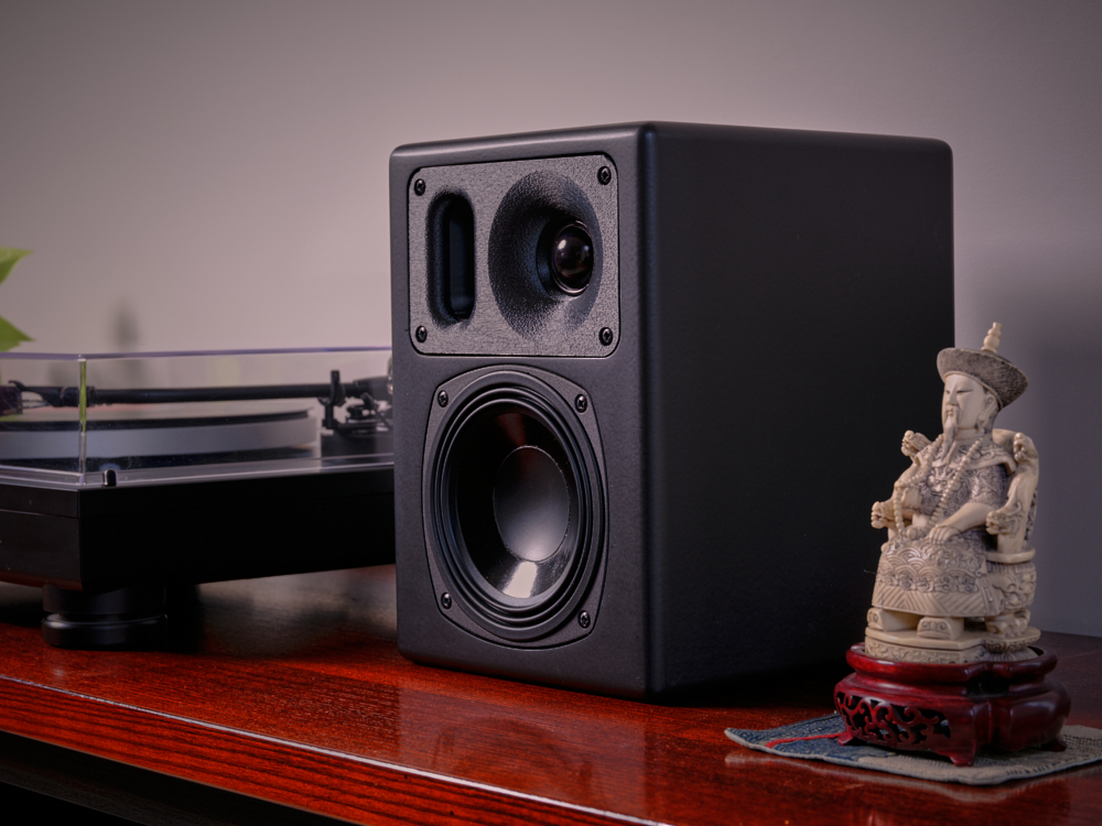 L’enceinte est constitué d’un tweeter Neodyme avec un dôme en soie de 28 mm et d’un woofer de 5 pouces équipé d’une membrane traitée.